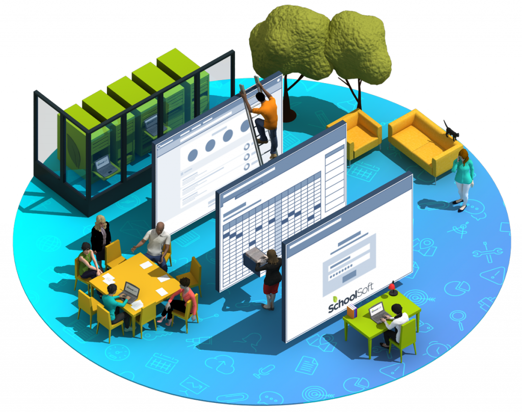 Marketing illustration for the SchoolSoft website.